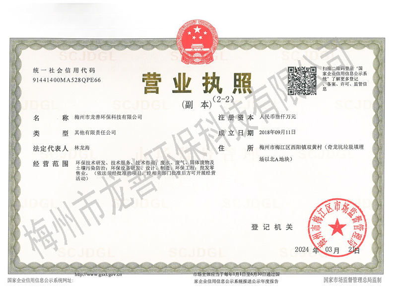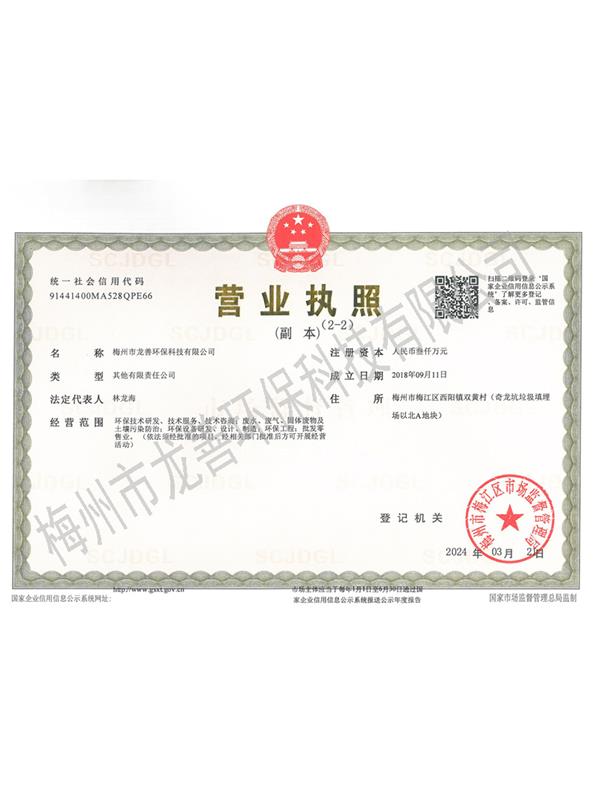 梅州市龍善環(huán)保科技有限公司為龍善環(huán)保股份有限公司(簡稱“龍善環(huán)保”)子公司。龍善環(huán)保于1995年12月成立,注冊資本為人民幣6,000萬元,總部位于深圳市南山區(qū)月亮灣大道2078號(hào)兆龍大樓16層。公司經(jīng)生態(tài)環(huán)境部、廣東省生態(tài)環(huán)境廳、深圳市生態(tài)環(huán)境局、深圳市交通運(yùn)輸委員會(huì)、深圳海事局等部門許可專業(yè)從事陸地和海洋環(huán)境保護(hù)產(chǎn)業(yè)的高科技民營企業(yè),主要經(jīng)營業(yè)務(wù)包括工業(yè)廢物收運(yùn)、資源化利用和無害化處理處置、海洋船舶污油水接收和集中處理處置、突發(fā)環(huán)境事故清污應(yīng)急處置等......